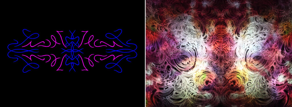 The Zazeela and Choi’s site-specific light environment will continue to be presented. With the American premiere of Marian Zazeela Abstract #1 from Quadrilateral Phase Angle Traversals, Zazeela wrote, “Much of my work in light and calligraphy has been grounded in concepts of structural symmetry. Quadrilateral Phase Angle Traversals is based on the Word Portraits series of drawings and neon sculptures in which I have presented names, words or ideas drawn with their bilaterally symmetrical, retrograde and mirror-inverted images, so that the abstract form of the written word may be viewed independently from its meaning. This allows the visual content of the work to be considered both apart from, and along with, the significance of the word. In Abstract #1 from Quadrilateral Phase Angle Traversals, I turned this concept inside-out and created a pattern that is derived from and evocative of letter forms, but which does not generate known words. The projection becomes a mandala-like visual focus interweaving through time.”