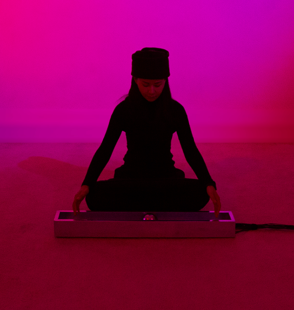 This avant-première performance will showcase a period instrument and a new set of associations, with Jung Hee Choi performing solo on the Instrument for La Monte Young, an audible sculpture designed and built in 1966 by Young’s early close colleague, Walter De Maria (1935-2013). Consisting of an oblong rectangular metal box encasing a rolling metal ball and with contact microphones to amplify the resonant sonorities generated by the ball as it moves back and forth, De Maria’s Instrument was directly inspired by Young’s intense interest in the properties and potentials of friction as a musical phenomenon. In her piece (entitled Seven for its focus on the seventh harmonic and for its use of the number seven as a constant function to extend the duration of microsounds as the primary thematic and formal element), Choi will route the tactile sounds of the Instrument through a modern digital processor governed by an algorithm of her own devising.