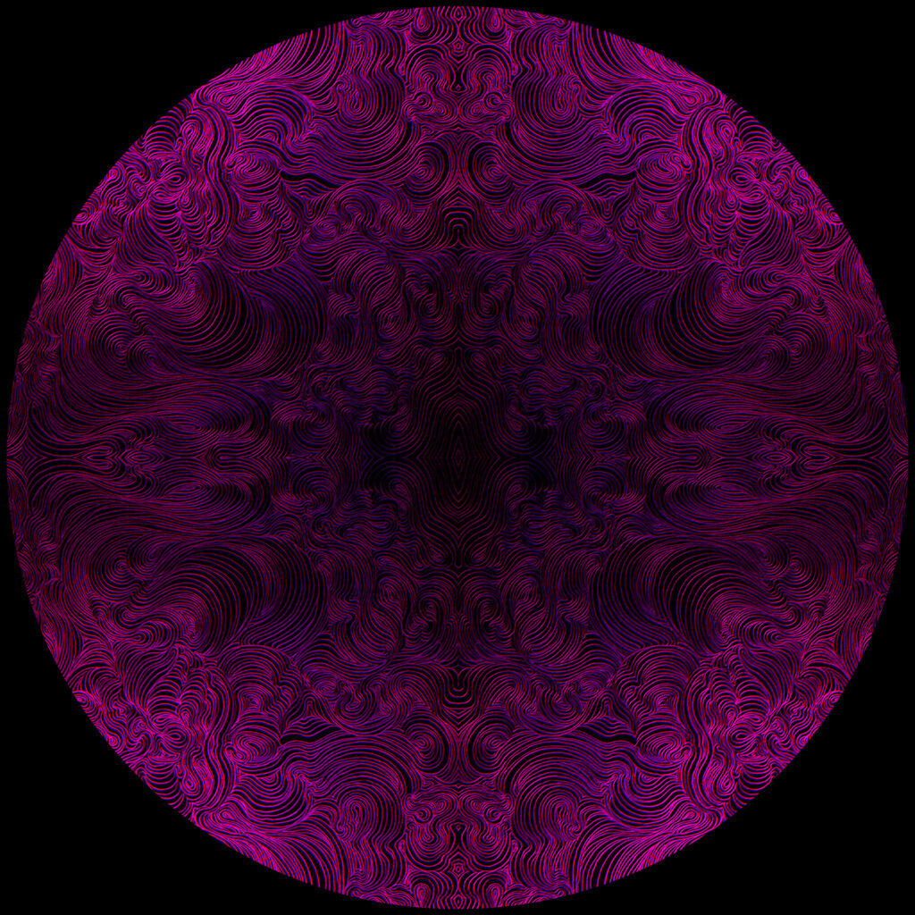 The concept of time crystals entered physics more than two decades after La Monte Young composed Chronos Kristalla, whose title itself already links time and crystallization. Young has described the work as an image of time —an evolution from continuous temporal flow into a state of apparent solidity and stillness, articulated through just‑intonation tunings and pure, crystalline harmonics. Time Crystals Rippling Over the Magenta Ocean responds to and extends this idea by imagining time at a microstructural quantum scale: the projection translates the composition’s harmonic stasis and slow transformation into an optical field where stability and motion interpenetrate, adding a new visual dimension to the listener’s experience of Young’s temporal architecture.